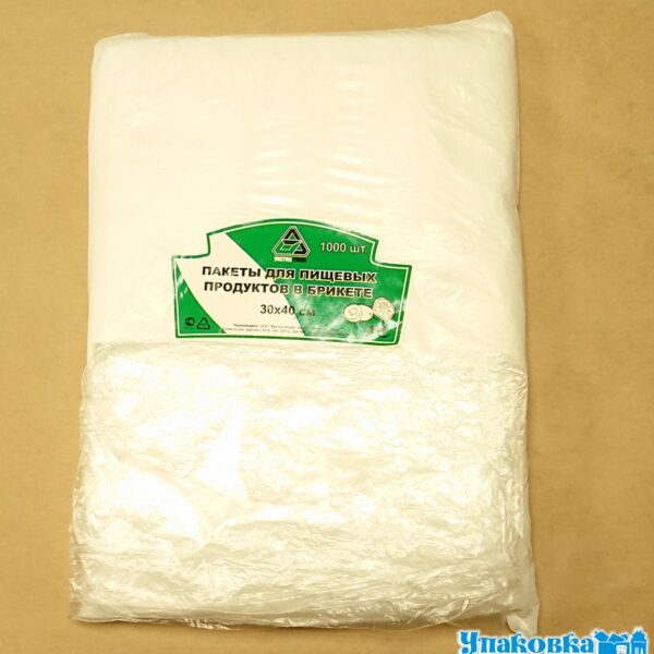 Пакеты фасовочные, размер 30*40см, плотность 5мк. Количество в пласте 1000 штук. Используются для фасовки, хранения продуктов питания, а так же других товаров. Пакеты удобно доставать через перфорированное отверстие сверху упаковки.