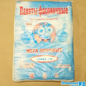 Пакеты фасовочные, размер 30*40см, плотность 6мк. Количество в пласте 400 штук. Используются для фасовки, хранения продуктов питания, а так же других товаров. Пакеты удобно доставать через перфорированное отверстие сверху упаковки.