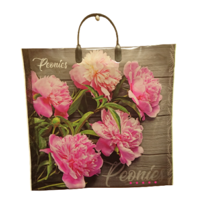Пакет с пластиковой ручкой, плотный, глянцевый, размер 36*34*5см. Применяется для бытовых нужд и как подарочная упаковка.