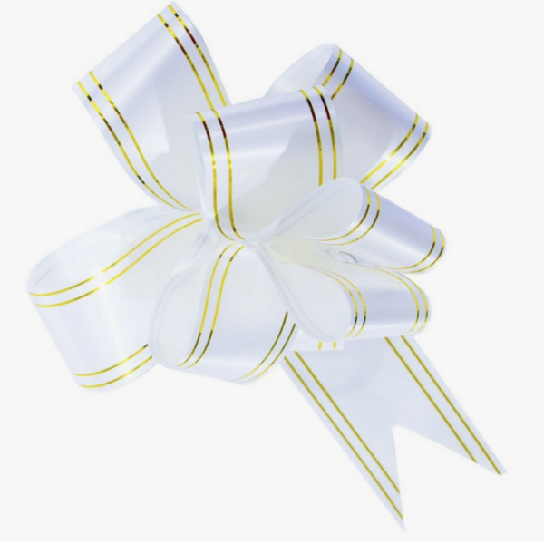 Бант-шар с золотой полосой 32 мм используют для украшения подарков и букетов. Бант добавляет оригинальности и обеспечивает нарядное праздничное оформление.