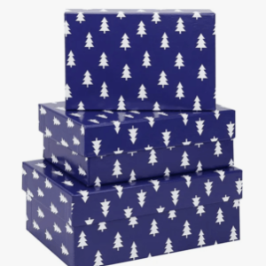 Набор коробок 3в1 прям-к 19,5*12,5*11/9см Новогодние елки на синем