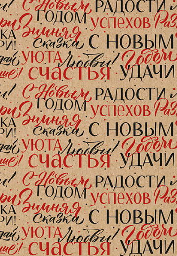 Бумага крафт НГ 78гр/м2 100см*70см Новогодние пожелания 5л/рул