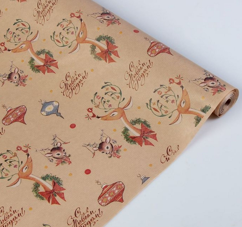 Бумага новогодняя Крафт используется для оформления подарочных коробок, подарков, книг, цветов, оригинальных поделок. Подарочная бумага выглядит стильно.