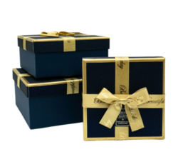 Набор коробок 3в1 квадрат 19*19*9,5-15*15*6,5см, с бантом, синий с золотом