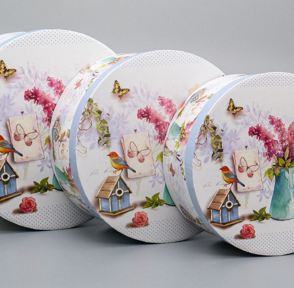 Набор коробок 3в1 круг H11хD22/ H10хD20/ H8,8хD18см, Букет