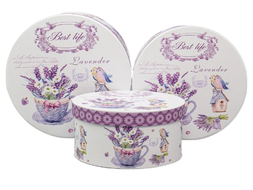 Набор коробок 3в1 круг H11хD22/ H10хD20/ H8,8хD18см, Птички