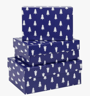 Набор коробок 3в1 прям-к 19,5*12,5*11/9см Новогодние елки на синем