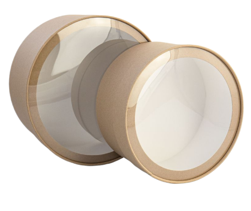 Набор коробок 2в1 шайба H15хD30/H13хD25см, с окошком, завальц. край, песочный