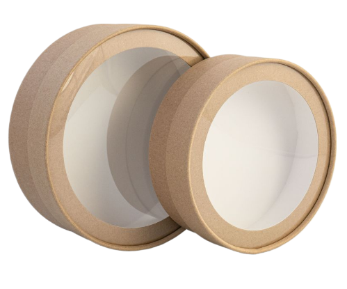 Набор коробок 2в1 шайба H15хD30/H13хD25см, с окошком, завальц. край, крафт