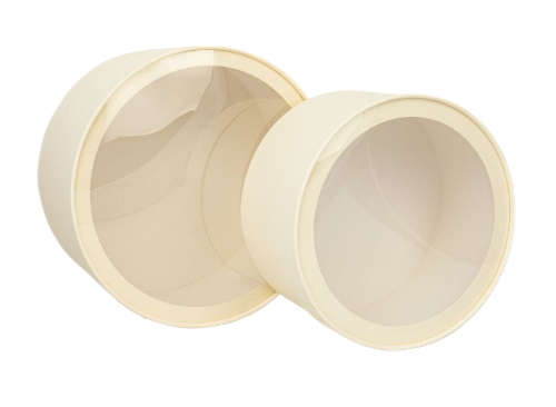 Набор коробок 2в1 шайба H15хD30/H13хD25см, с окошком, завальц. край, сливочный