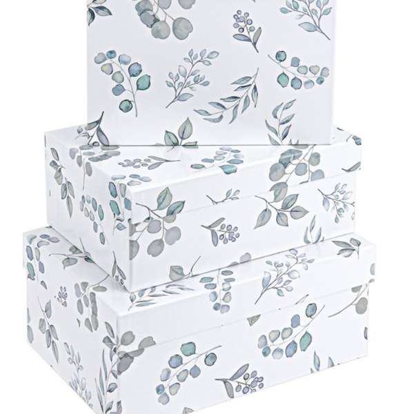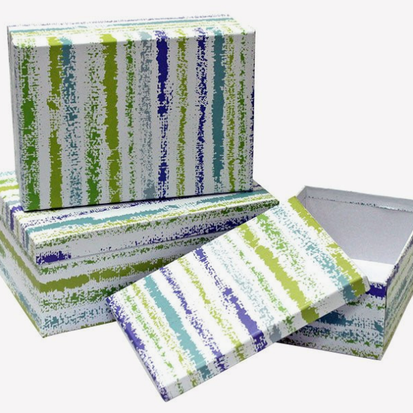Набор прямоугольных коробок с интересным дизайном поможет оформить запоминающийся яркий подарок, который приятно дарить и получать.