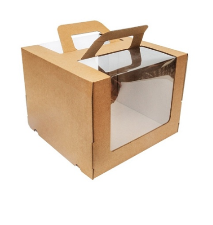 Коробка картонная для подарков 260*260*200мм с окном и ручками. Выдерживает вес до 3кг Цвет бурый/бурый.