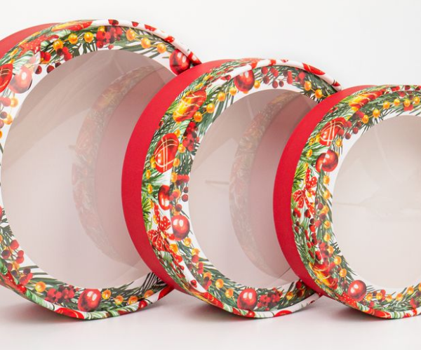 Набор коробок НГ 3в1 шайба 7*21/6*18/5*16см Новогодний узор
