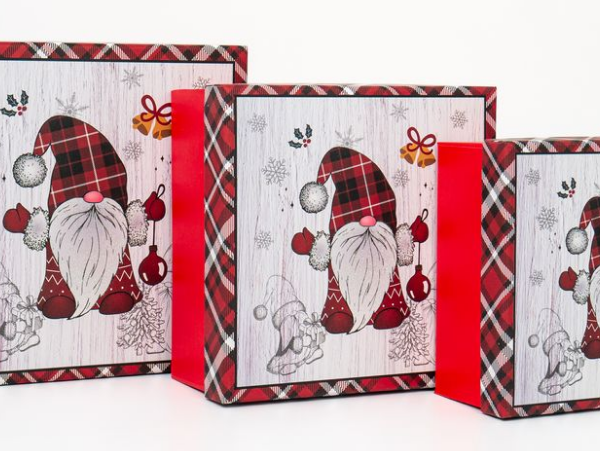 Набор коробок НГ 3в1 квадрат 20*20*9,5/15,5*15,5*7,5см Гном с посохом