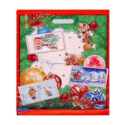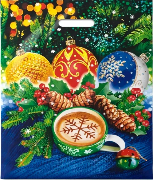 Новогодний пакет с вырубной ручкой, размер 41*51см, плотность 80мк. Пакет служит для упаковки косметических средств, бижутерии, небольших подарков, игрушек. Продается по 25 штук.
