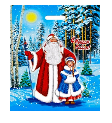 Новогодний пакет с вырубной ручкой, размер 40*47см, плотность 45мк. Пакет служит для упаковки небольших подарков, предметов одежды, продуктов. Продается по 50 штук.