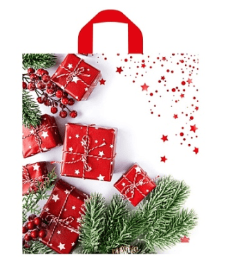 Новогодний пакет с петлевой ручкой 38*42см, 40мк. Используется для упаковки подарков, различных товаров. Продается по 25 штук.