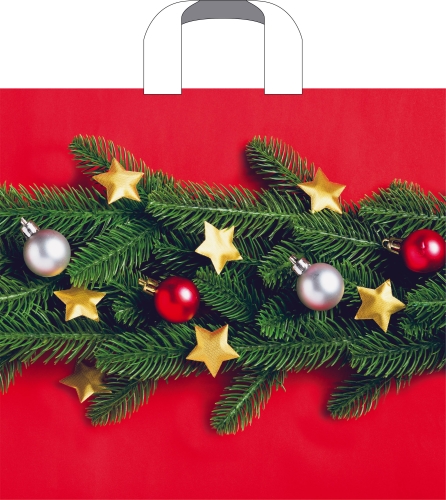 Пакет новогодний с петлевой ручкой, размер 38*42см, плотность 37мкр. Внешне имеет гладкую поверхность. Пакет выдерживает средние весовые нагрузки. Продается упаковкой по 50 штук.