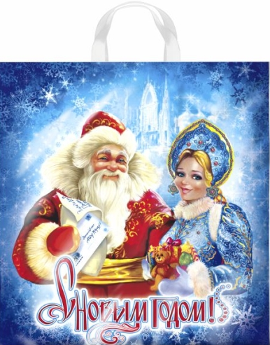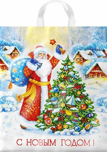 Новогодний пакет с петлевой ручкой 38*42см, 50мк. Используется для упаковки подарков, различных товаров. Продается по 25 штук.