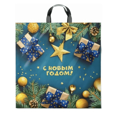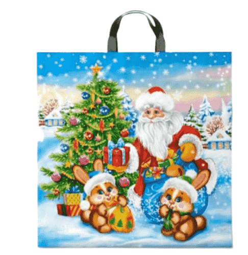 Новогодний пакет с петлевой ручкой 44*44см, 70мк. Используется для упаковки подарков, различных товаров. Продается по 25 штук.