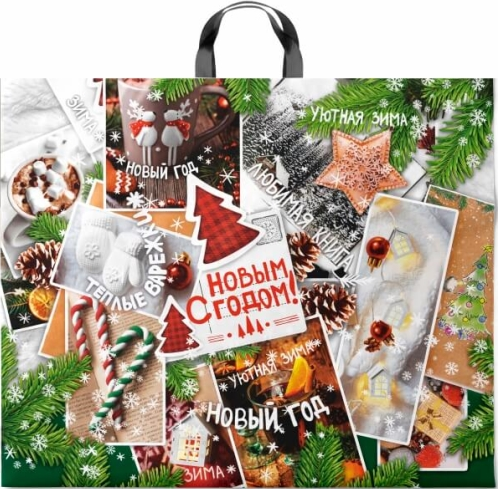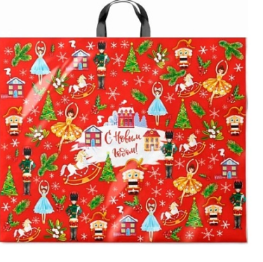 Новогодний пакет с петлевой ручкой 60*50см, 60мк. Используется для упаковки подарков, различных товаров. Продается по 25 штук.