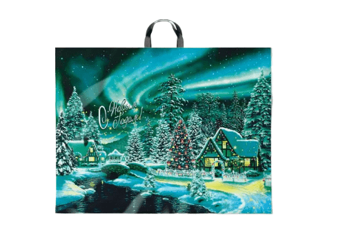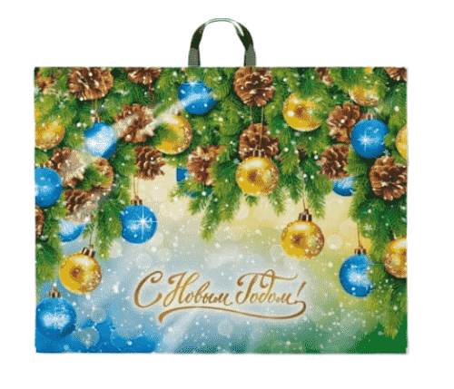 Новогодний пакет с петлевой ручкой 71*55см, 90мк. Используется для упаковки подарков, различных товаров. Продается по 25 штук.