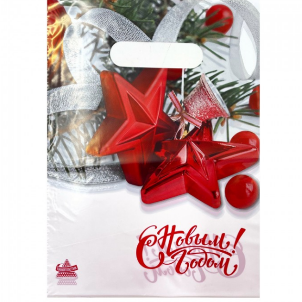 Новогодний пакет с вырубной ручкой, размер 20*30см, плотность 30мк. Пакет служит для упаковки косметических средств, бижутерии, небольших подарков, игрушек.
