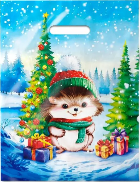 Новогодний пакет с вырубной ручкой, размер 31*40см, плотность 60мк. Пакет служит для упаковки косметических средств, сувениров, небольших подарков, игрушек. Продается по 50 штук.
