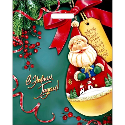 Новогодний пакет с вырубной ручкой, размер 38*47см, плотность 60мк. Пакет служит для упаковки косметических средств, подарков, игрушек. Продается по 50 штук.