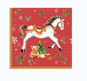 Салфетка 20л 33*33см 3сл НГ Лошадка красный фон Bouquet /12/