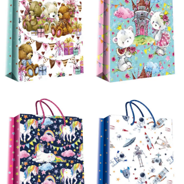 Сумка бумажная подарочная, размер 32*26,5*14,5см. В упаковке 4 цвета микс.