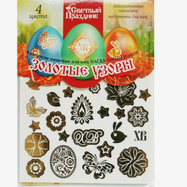В "Пасхальный золотой набор" входят пищевые красители, которые помогут празднично оформить пасхальные яйца.