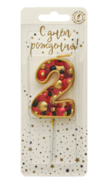 Свеча для торта на шпажке «пузырьки» с цифрой 2 — служит для украшения праздничного торта.
