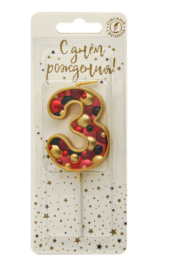 Свеча для торта на шпажке «пузырьки» с цифрой 3 — служит для украшения праздничного торта.