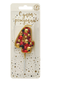 Свеча для торта на шпажке «пузырьки» с цифрой 4 — служит для украшения праздничного торта.
