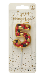 Свеча для торта на шпажке «пузырьки» с цифрой 5 — служит для украшения праздничного торта.
