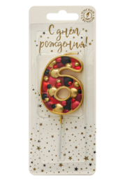 Свеча для торта на шпажке «пузырьки» с цифрой 6 — служит для украшения праздничного торта.