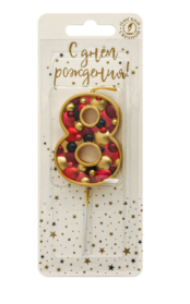 Свеча для торта на шпажке «пузырьки» с цифрой 8 — служит для украшения праздничного торта.
