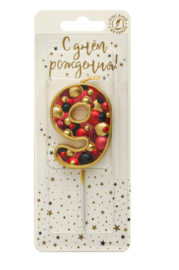 Свеча для торта на шпажке «пузырьки» с цифрой 9 — служит для украшения праздничного торта.