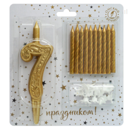 Набор свечей классическое золото для торта с цифрой 7 + 10 свечей с подставкой — служит для украшения праздничного торта.