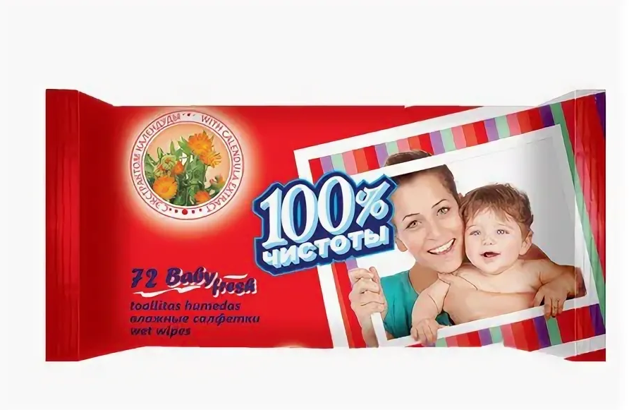 72шт Салфетки влажные 100% чистоты Для детей /24