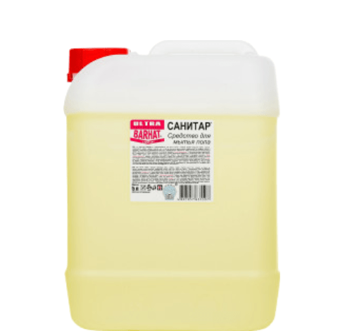 Средство для мытья пола «Бархат ULTRA Санитар» объёмом 5 л в канистре предназначено для мытья полов с любыми видами покрытия (дерево, кафель, паркет, пластик и пр.), а также для мытья других видов поверхностей.