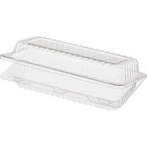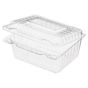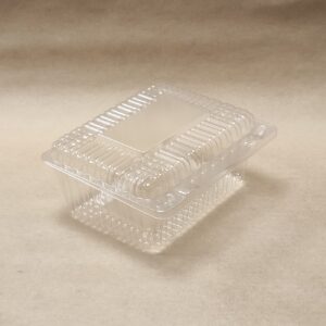 Прозрачный прямоугольный контейнер с совмещенной крышкой предназначен для фасовки кондитерских изделий. В коробе 330 шт.
