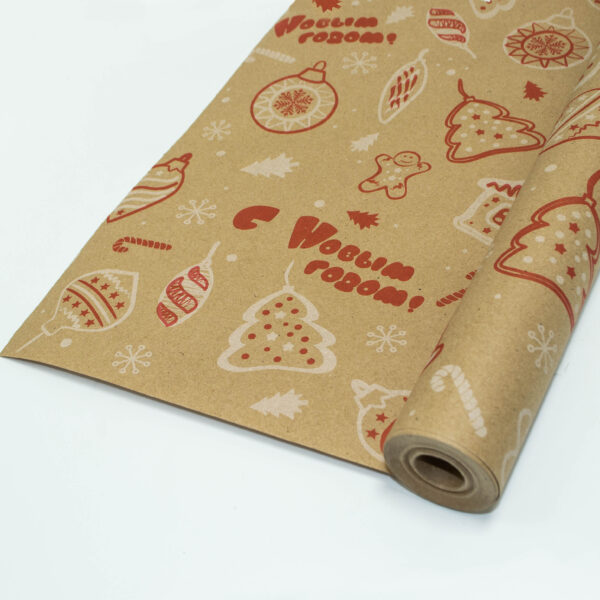 Бумага Крафт НГ 70см*10м Елочная игрушка бел+красн