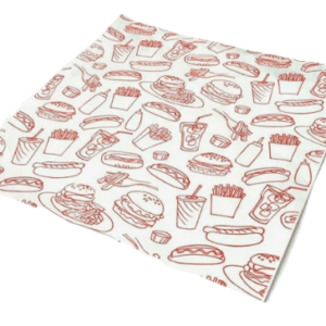 Обёрточная бумага «Гамбургер» размером 305×305 мм (в упаковке 500 листов) предназначена для упаковки пищевых продуктов. Материал — пищевая бумага и парафин.
