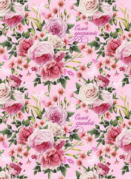 Бумага глянцевая 80гр/м2 100см*70см Цветы и пожелания 5л/рул