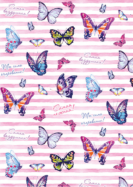 Бумага крафт 100см*70см 78гр/м2 Бабочки (белый)5л/рул