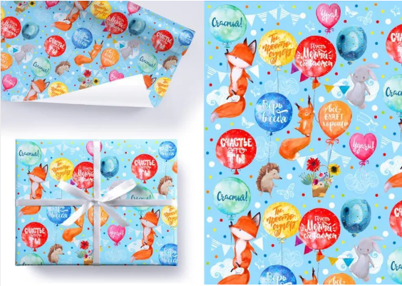Бумага глянцевая Лисички используется для оформления подарочных коробок, подарков, книг, цветов, оригинальных поделок. Подарочная бумага выглядит стильно.
