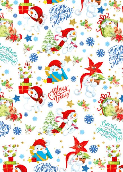 Бумага крафт белый НГ 78гр/м2 100см*70см Снеговики с подарками 5л/рул