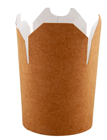 Контейнер бумажны, объем 500мл, ЭКО China Pack можно использовать под лапшу wok, рис, пельмени, вареники. Изготовлен из влагожироустойчивого картона. Контейнер пригоден для разогревания в микроволновой печи. В коробе 420 шт.
